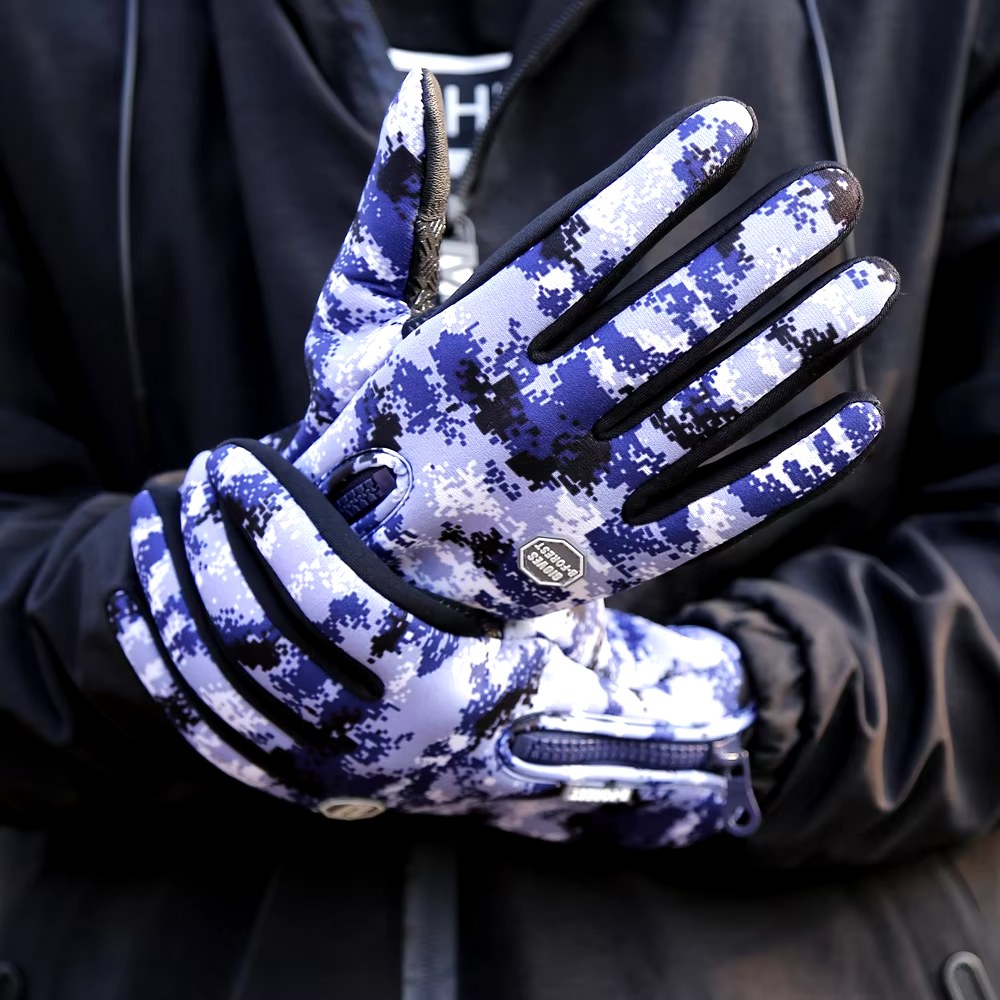 Halten Sie Ihre Hände mit Stil trocken! Unsere speziellen wasserdichten Handschuhe sind nicht nur super praktisch bei Regen, sondern sehen auch cool aus. Entdecken Sie unsere neuen Limited Edition-Farben „Camo Blue“ und „Camo Brown“.